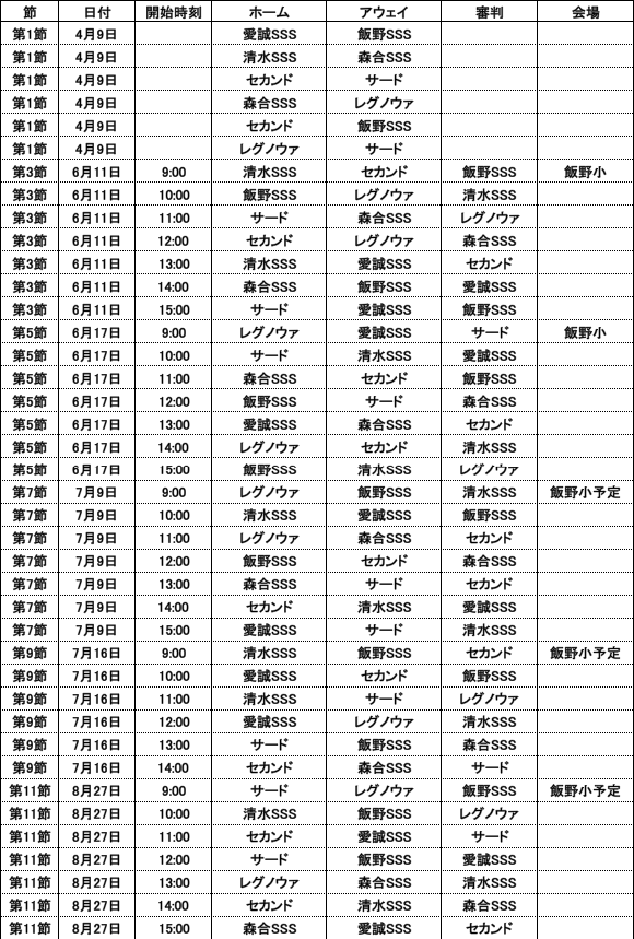 愛誠、飯野、清水、中央ドリマセカンド、中央ドリマサード、森合、レグノウァ