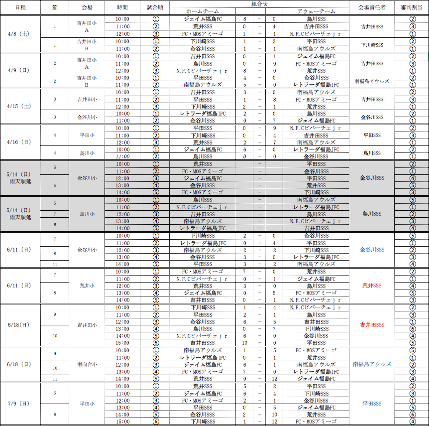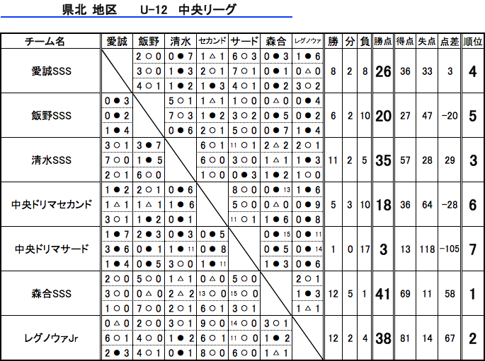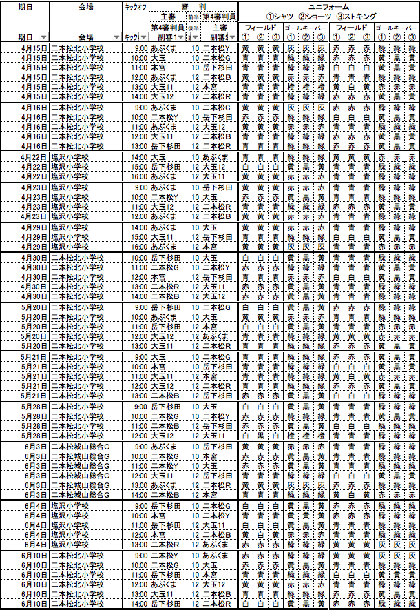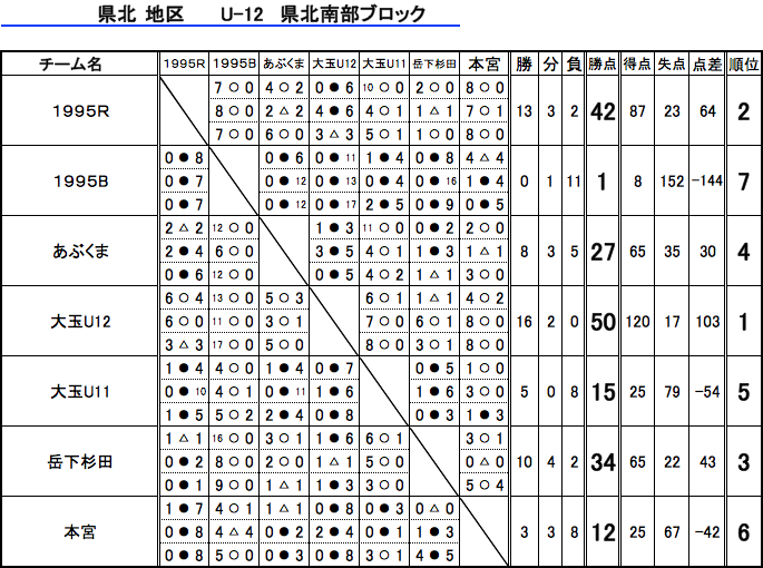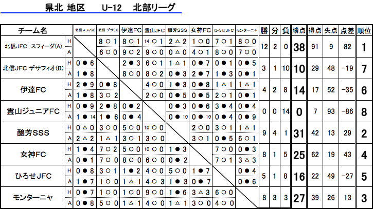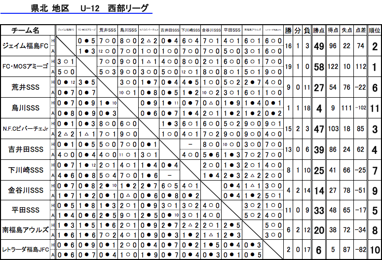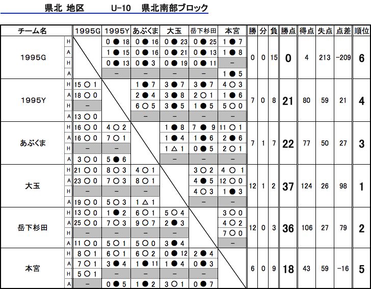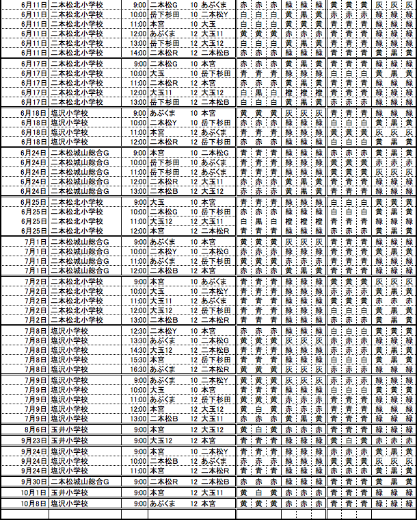 二本松R、二本松B、あぶくま、大玉U12、大玉U11、岳下杉田、本宮