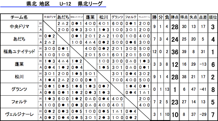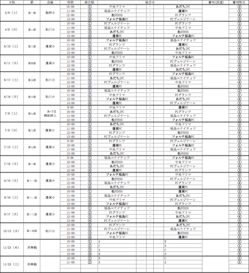 中央ドリマ、あだち、福島ユナイテッド、蓬莱、松川、グランツ、フォルテ、ヴェルジナーレ