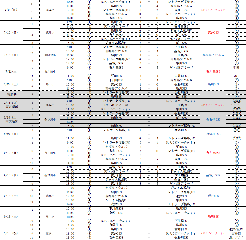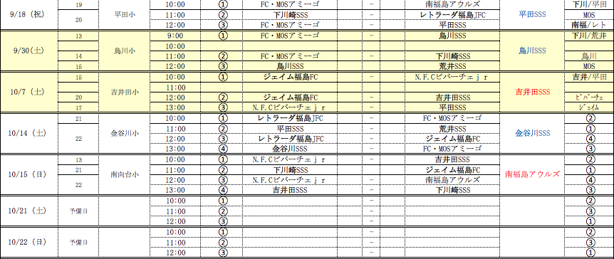 ジェイム福島、MOSアミーゴ、荒井、鳥川、ビバーチェ、吉井田、下川崎、金谷川、平田、南福島アウルズ、レトラーダ福島