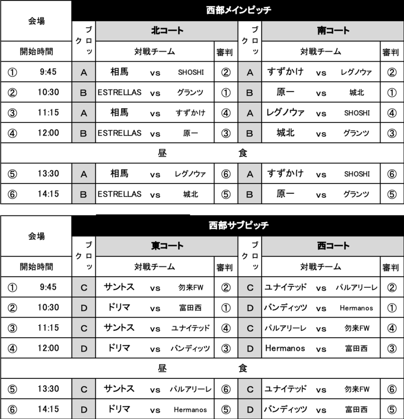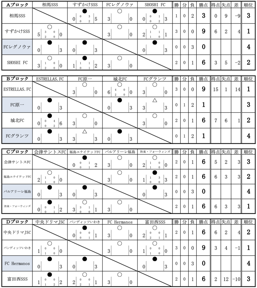 FCレグノウァ、FC原一、FCグランツ、パルアリーレ福島、FC Hermanos