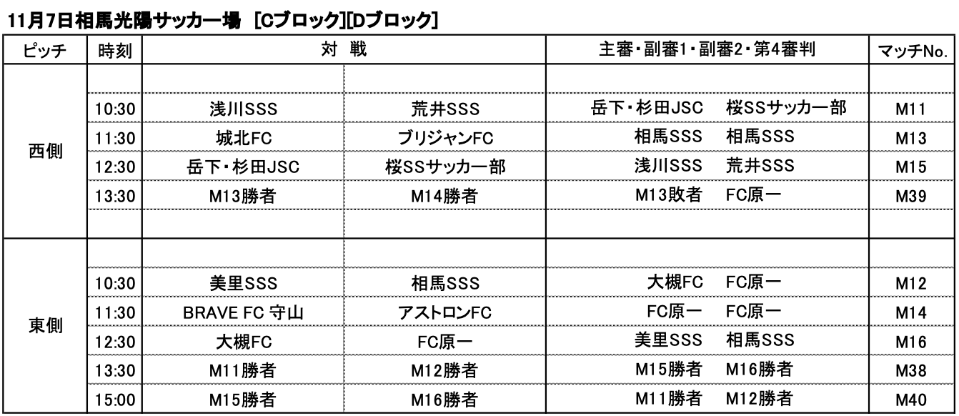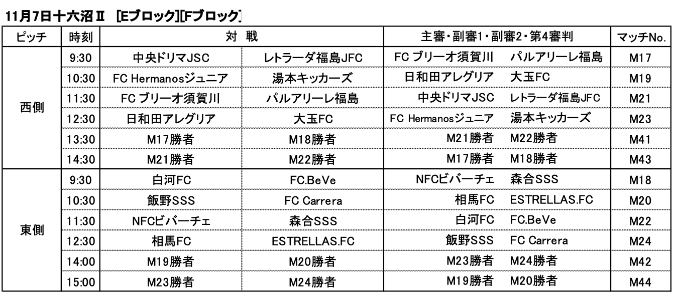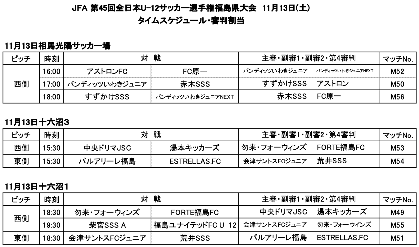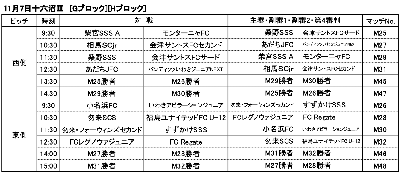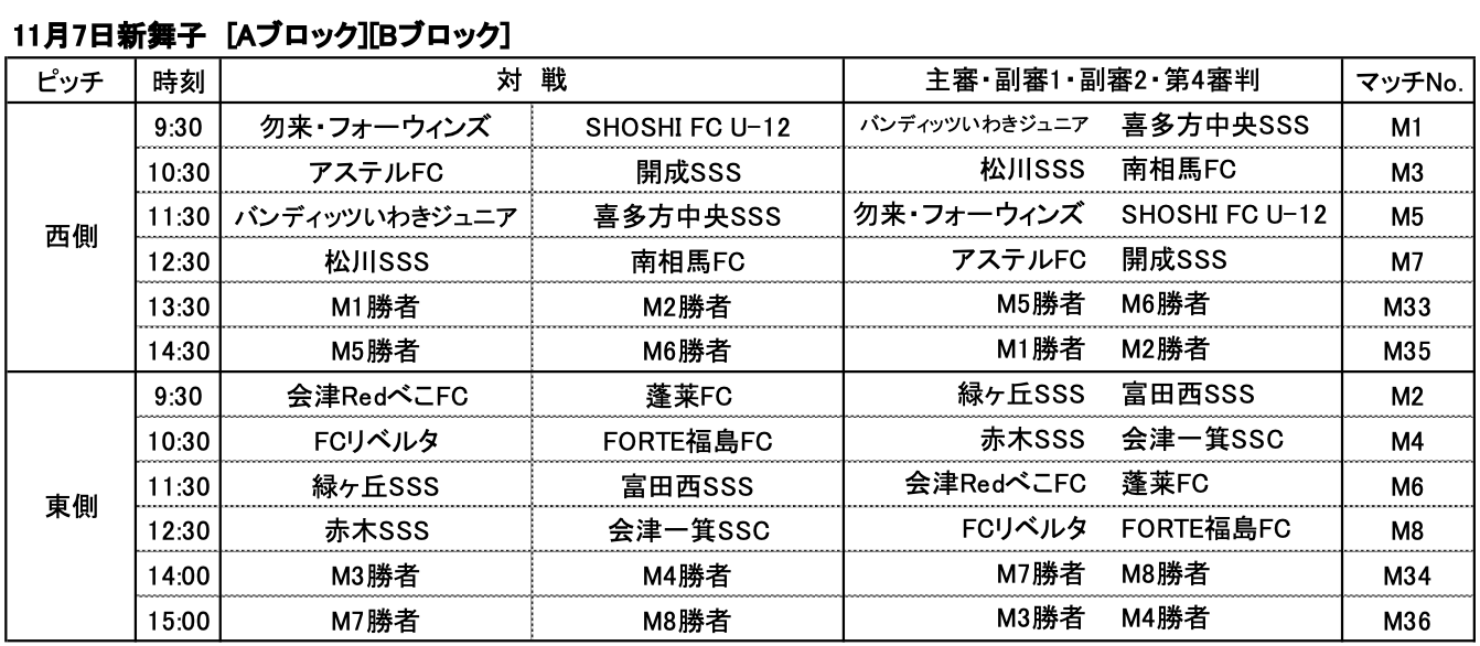 県南(11チーム)開成SSS、大槻FC、白河FC、SHOSHI、ブレイヴFC守山、ブリジャンFC、FCリベルタ、桜SSS、パルアリーレ福島、緑ヶ丘SSS、赤木SSS | |