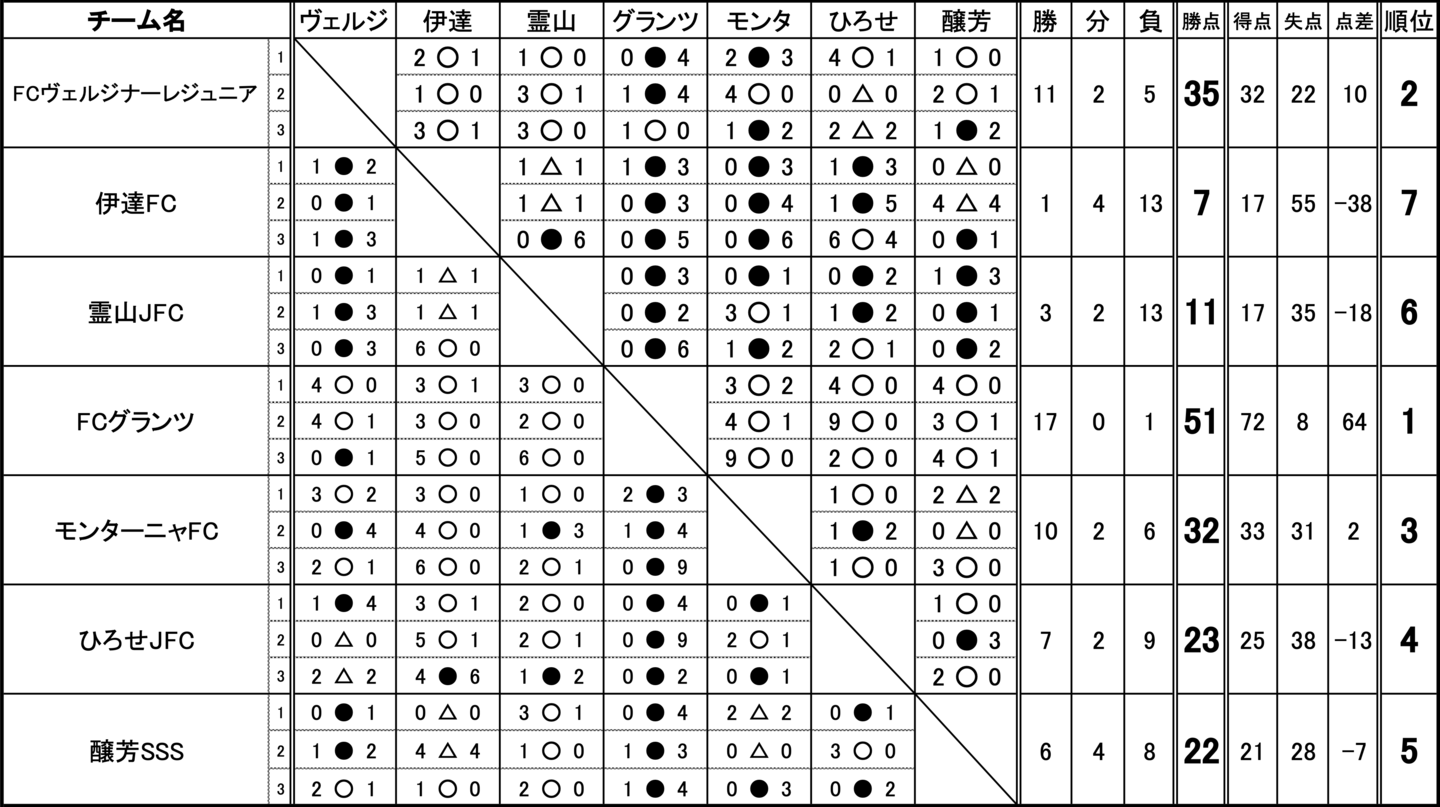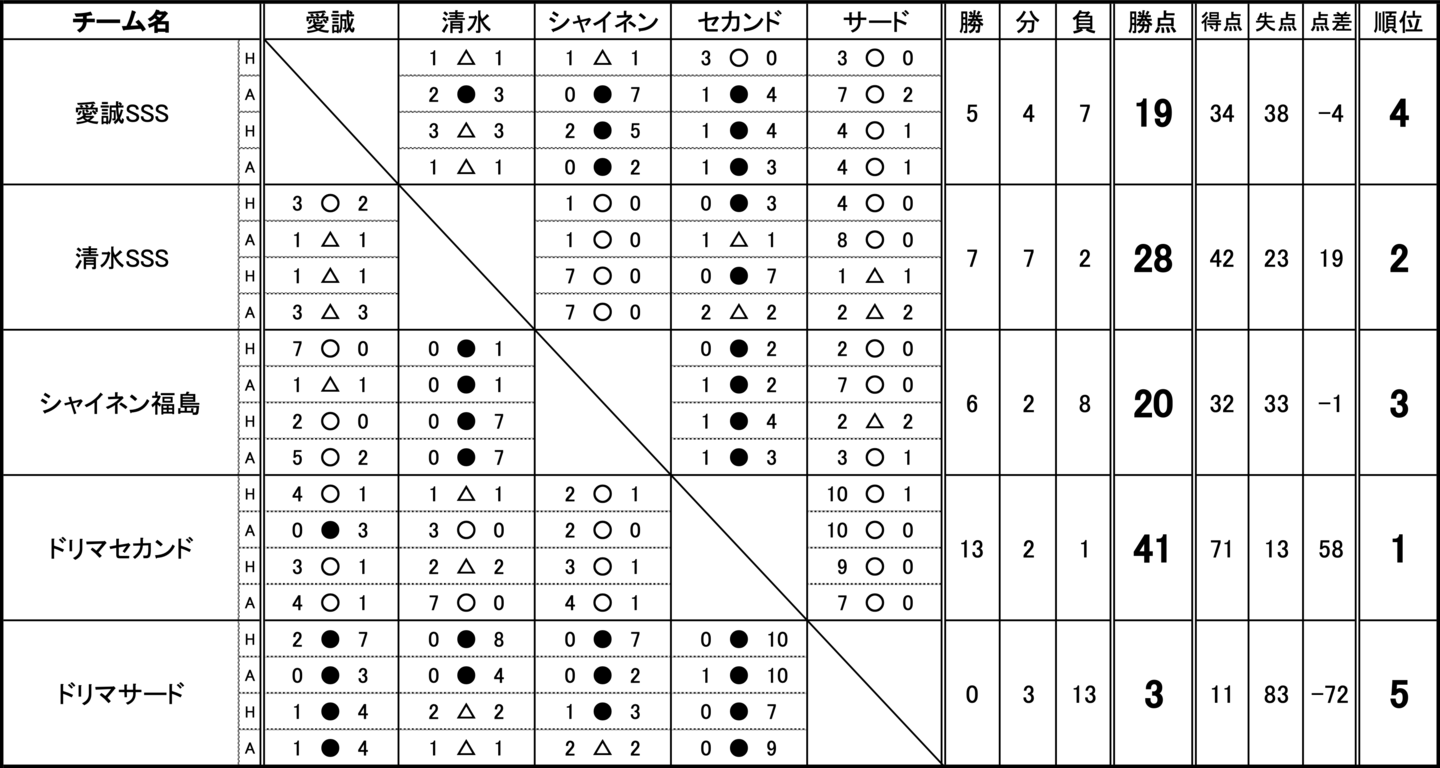 愛誠SSS、御山JFC、清水SSS、シャイネン福島、ドリマセカンド、レグノウァJr