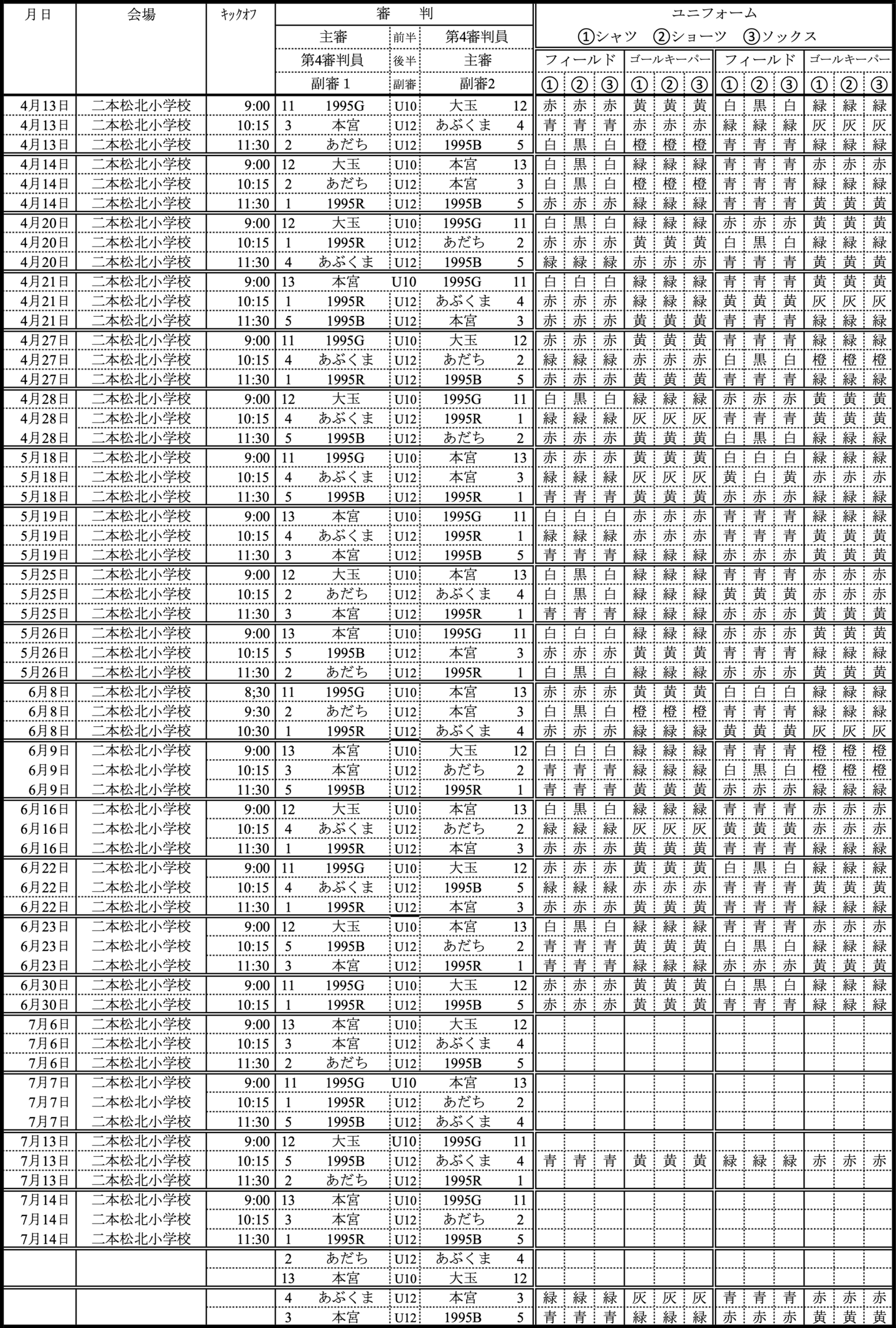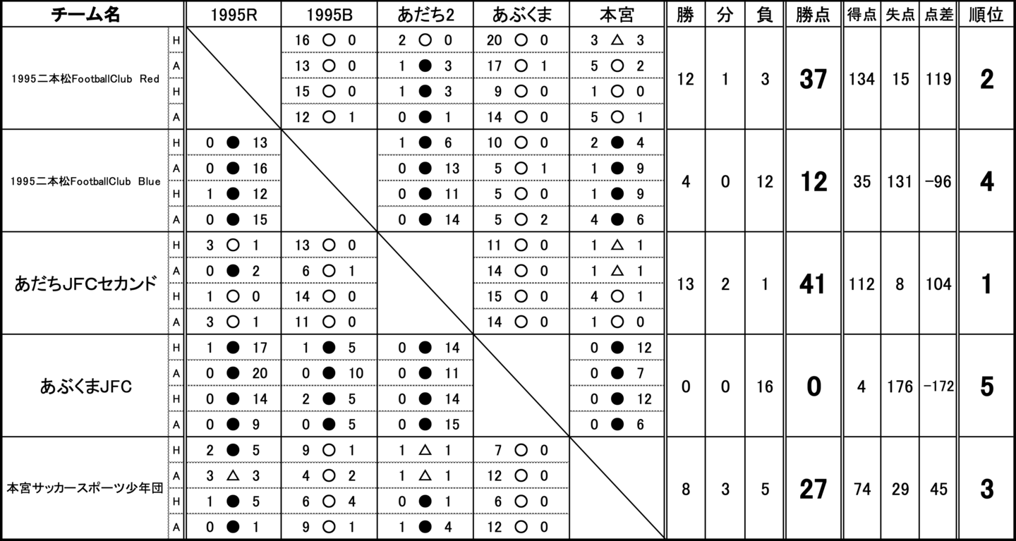 1995二本松FootballClub Red、1995二本松FootballClub Blue、あだちJFCセカンド、あぶくまJFC、本宮サッカースポーツ少年団
