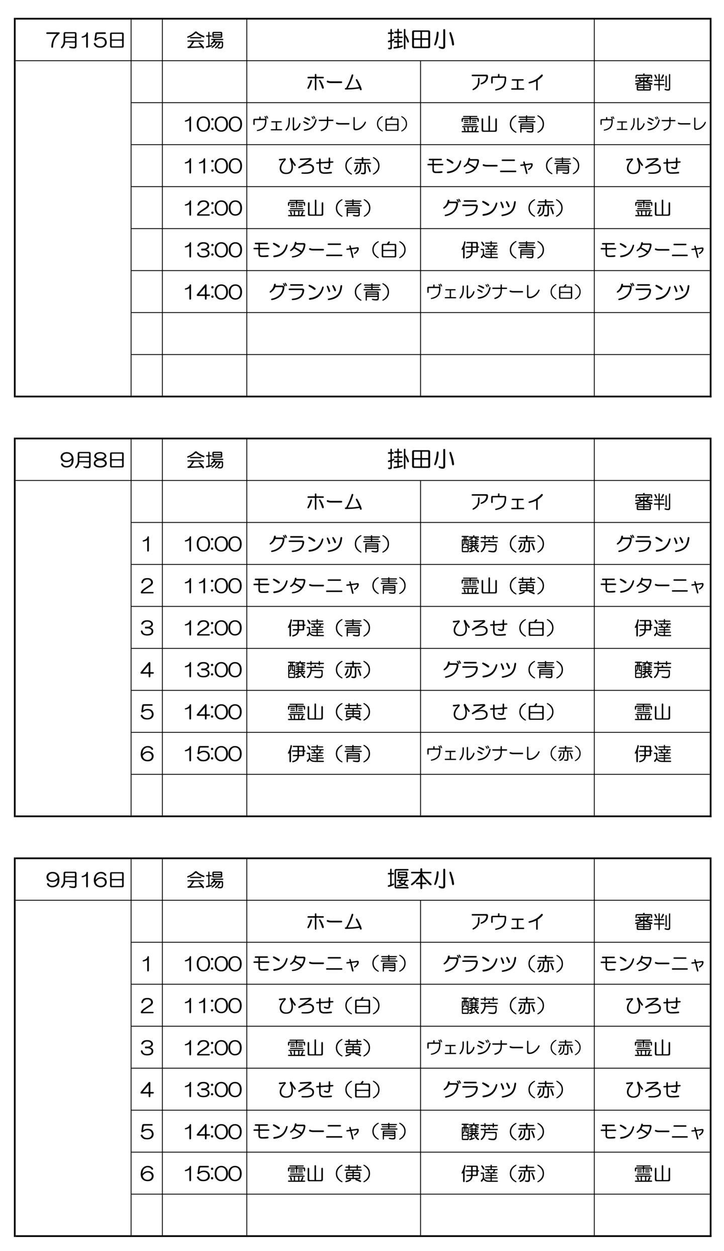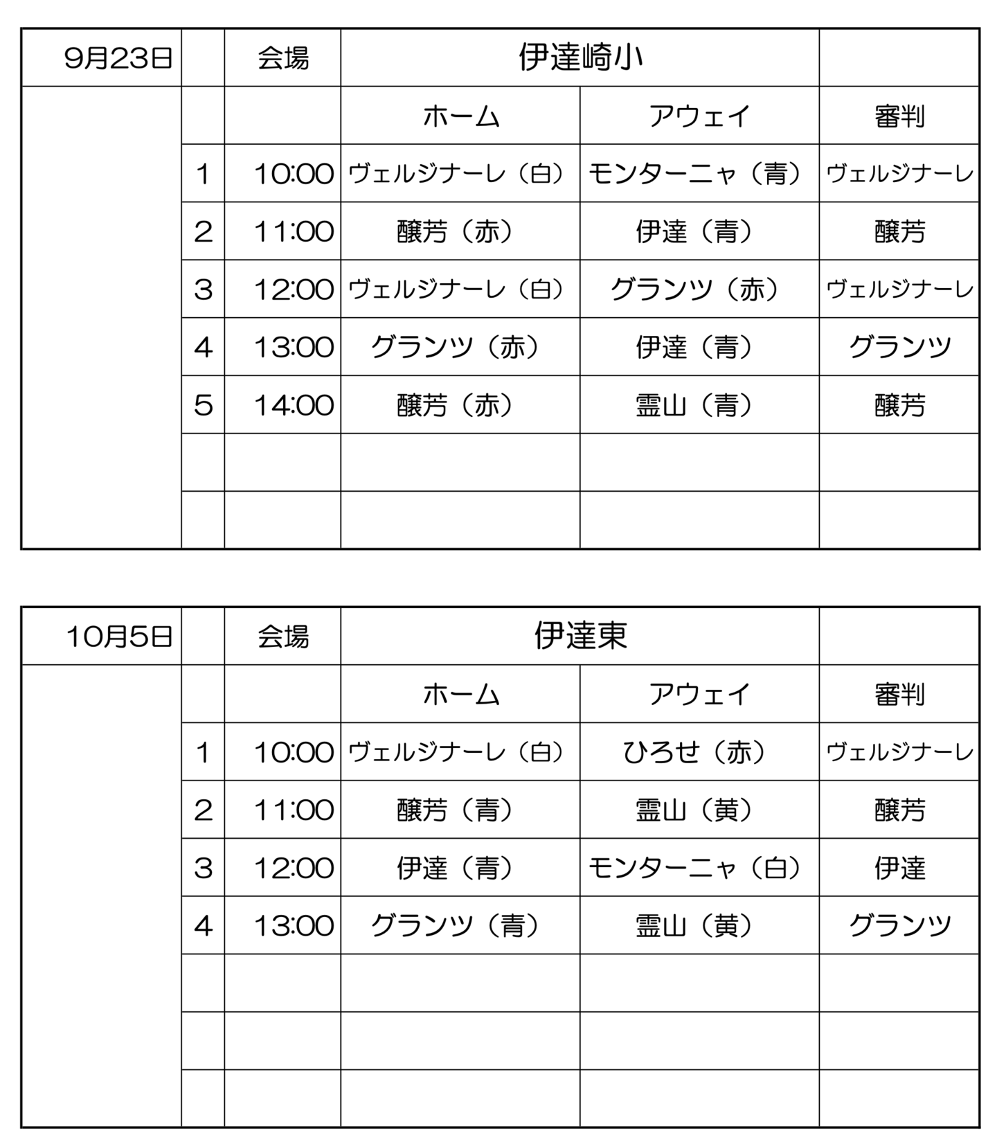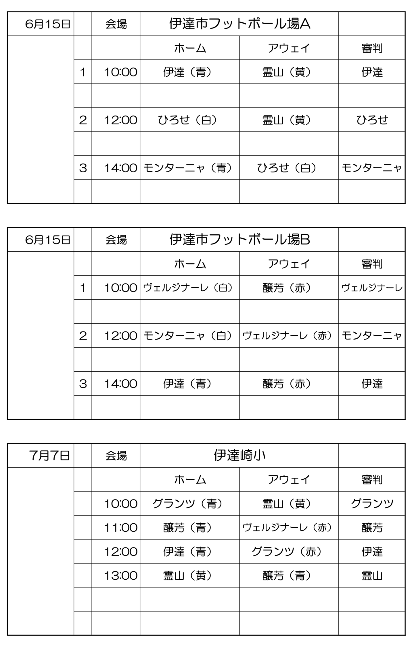 FCヴェルジナーレジュニア、伊達FC、霊山JFC、FCグランツ、モンターニャFC、ひろせJFC、醸芳SSS
