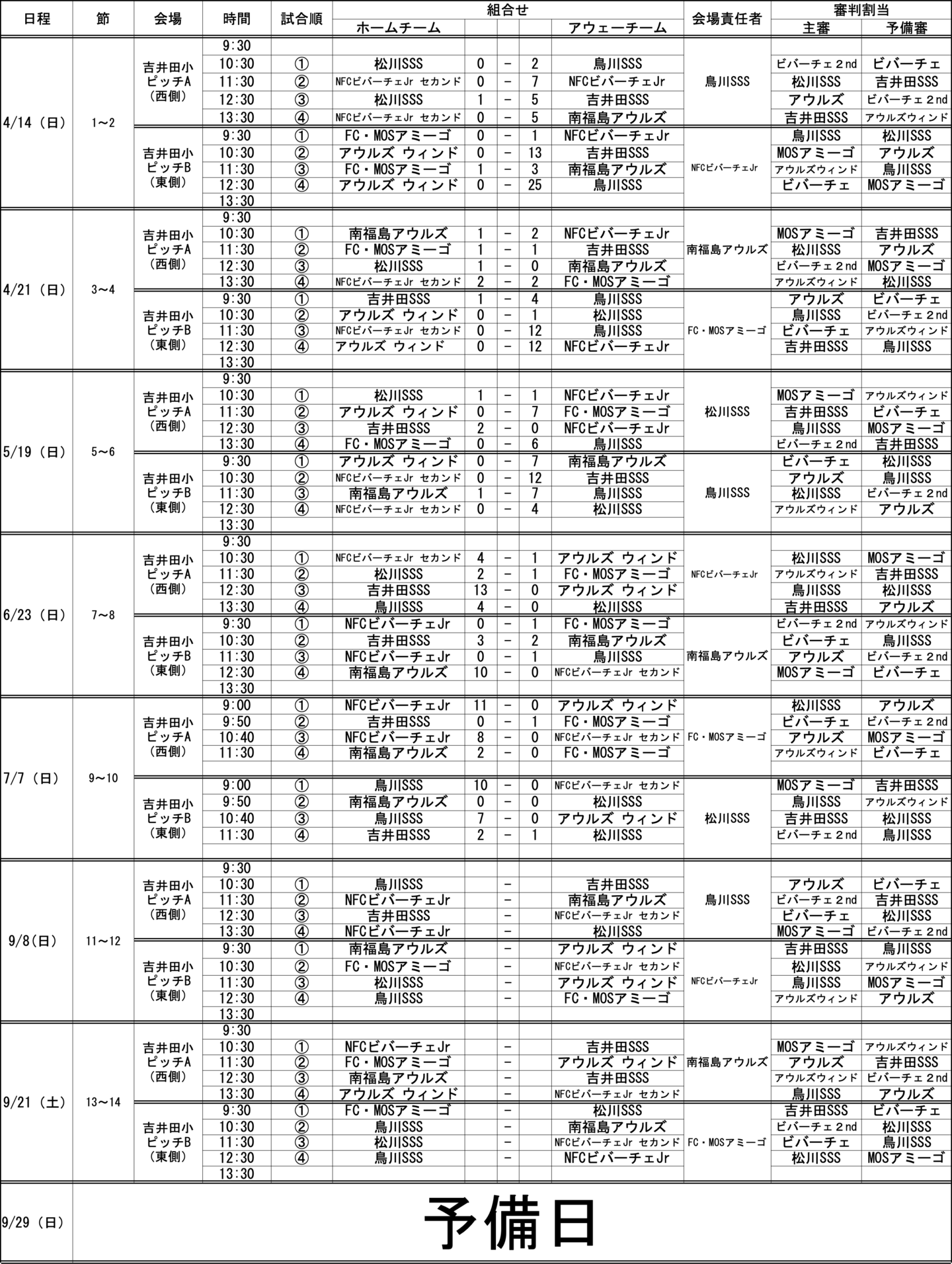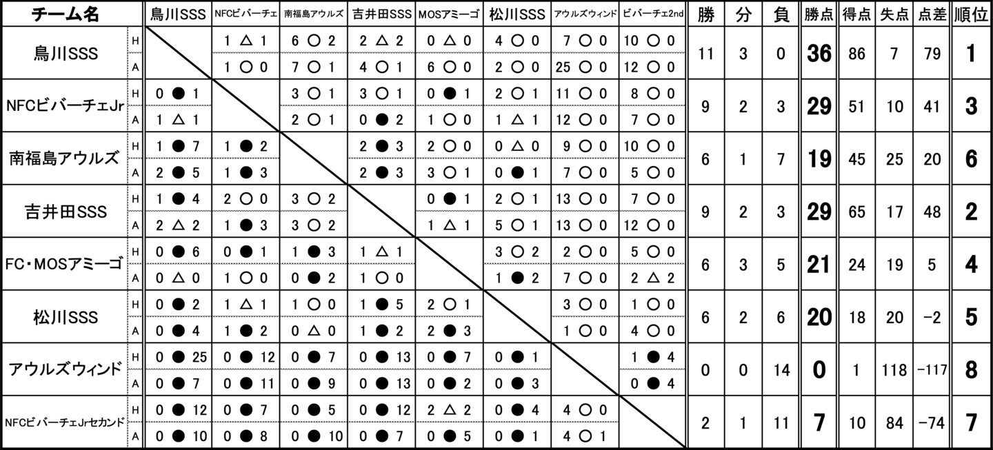 鳥川SSS、NFCビバーチェJr、南福島アウルズ、吉井田SSS、FC・MOSアミーゴ、松川SSS、アウルズウィンド、NFCビバーチェJrセカンド