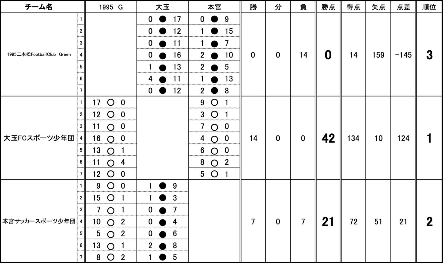 1995二本松FootballClub Green、大玉FCスポーツ少年団、本宮サッカースポーツ少年団