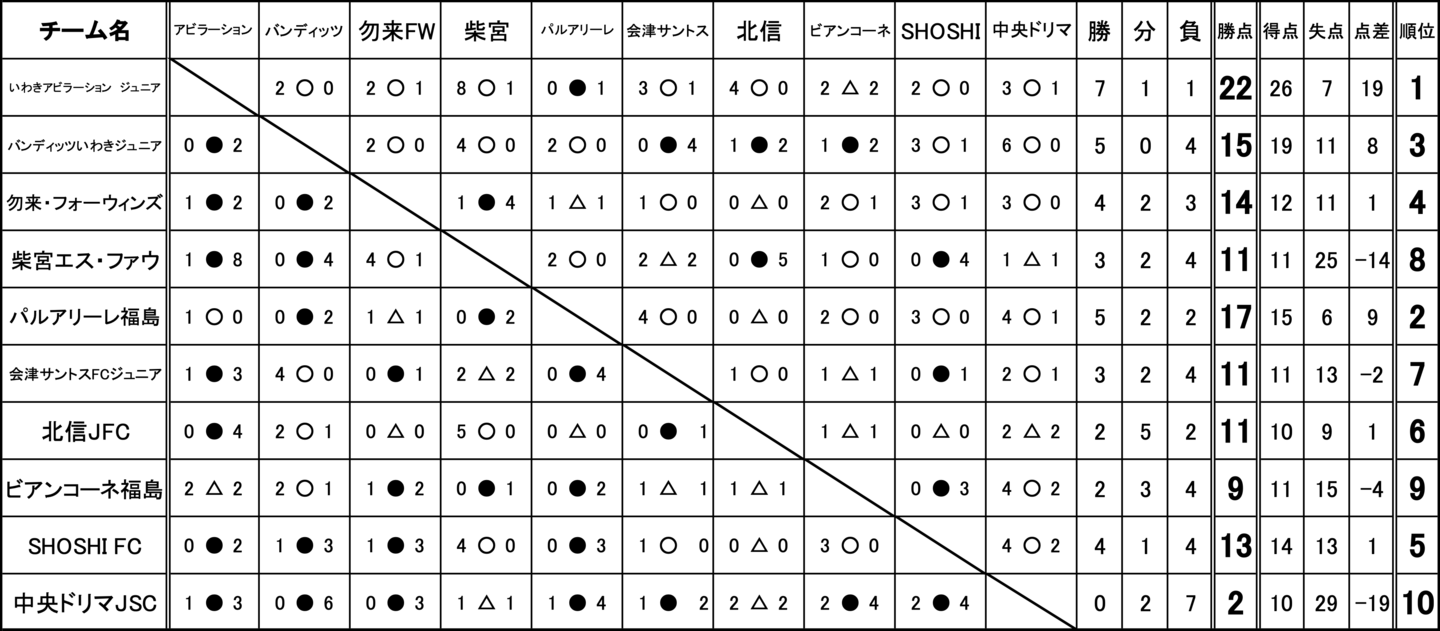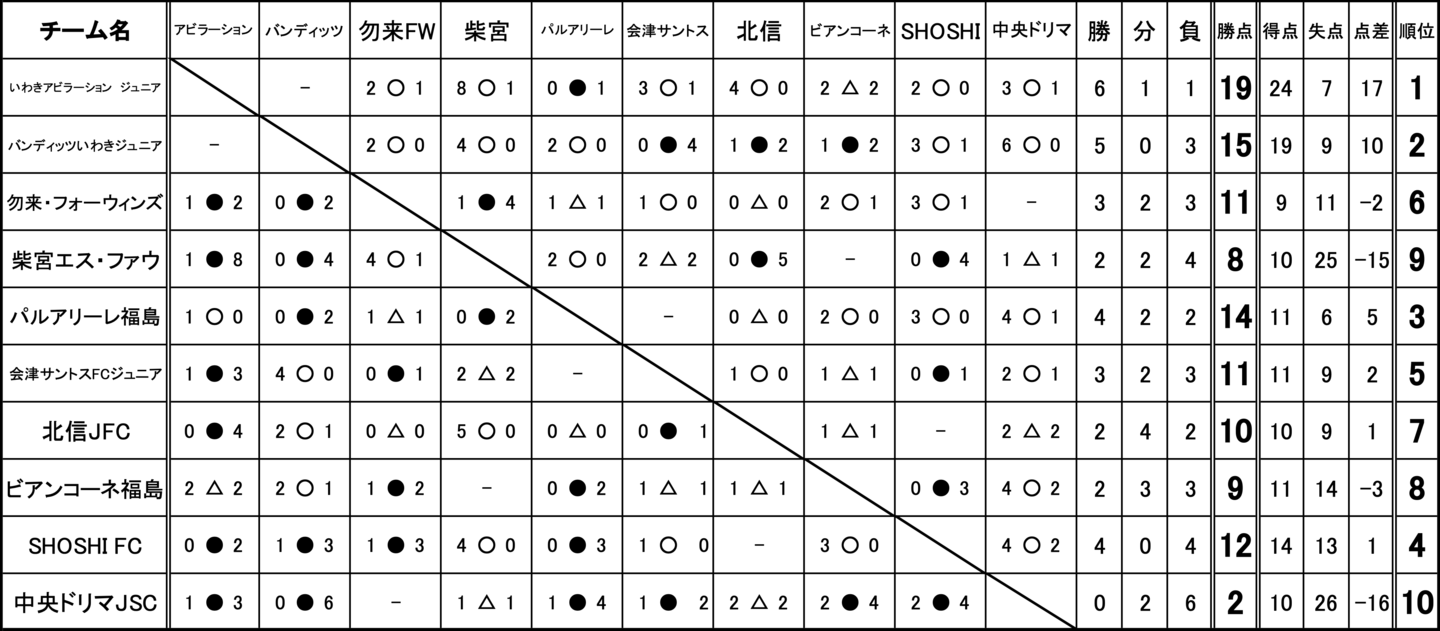 バンディッツいわきジュニア、いわきアビラーション ジュニア、パルアリーレ福島、郷ケ丘SSS、アステルFC、富田西SSS、FCリベルタ、南相馬FC、勿来・フォーウィンズ、柴宮エス・ファウ