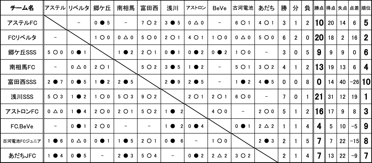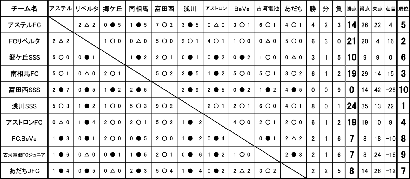 アステルFC、FCリベルタ、郷ケ丘SSS、南相馬FC、富田西SSS、浅川SSS、アストロンFC、FC.BeVe、古河電池FCジュニア、あだちJFC