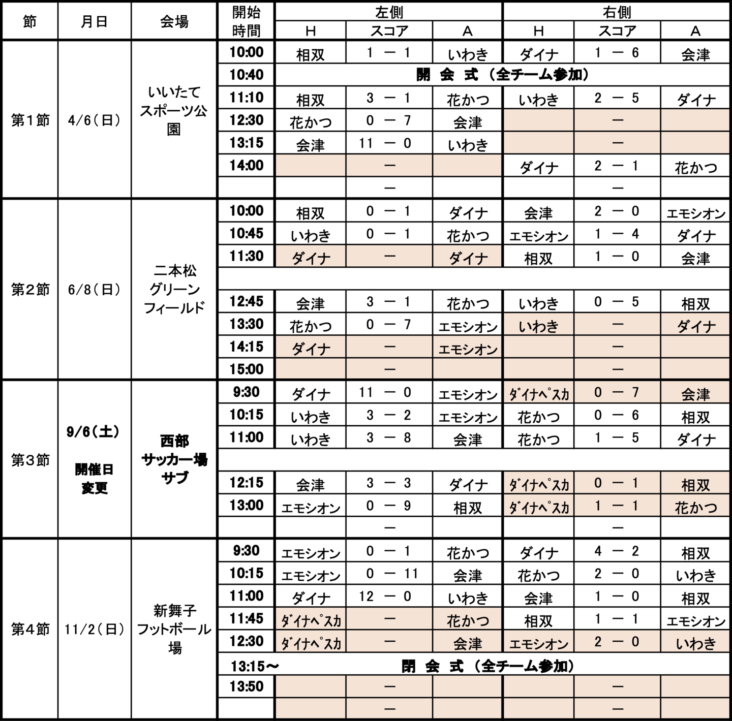 ダイナ福島、エモシオン、FLOR会津、花かつみラガッツァ、フェアリーズいわき、相双