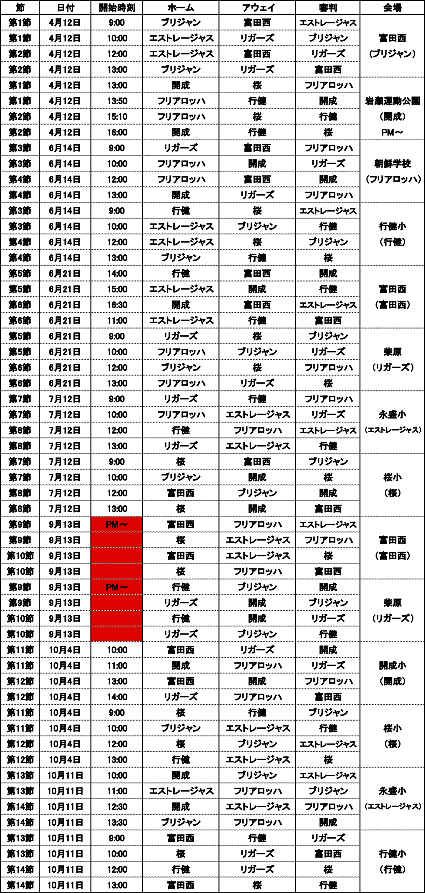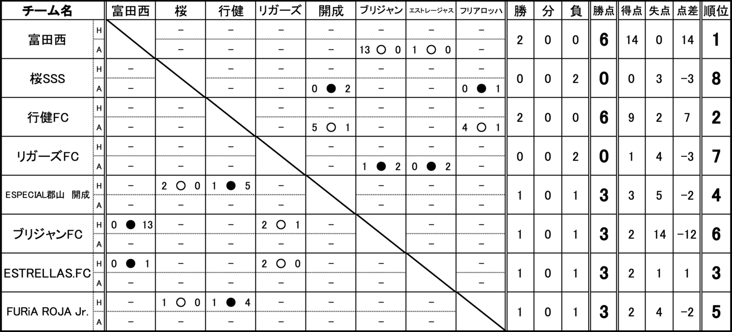 富田西、桜SSS、行健FC、リガーズFC、ESPECIAL郡山 開成、ブリジャンFC、ESTRELLAS.FC、FURiA ROJA Jr.
